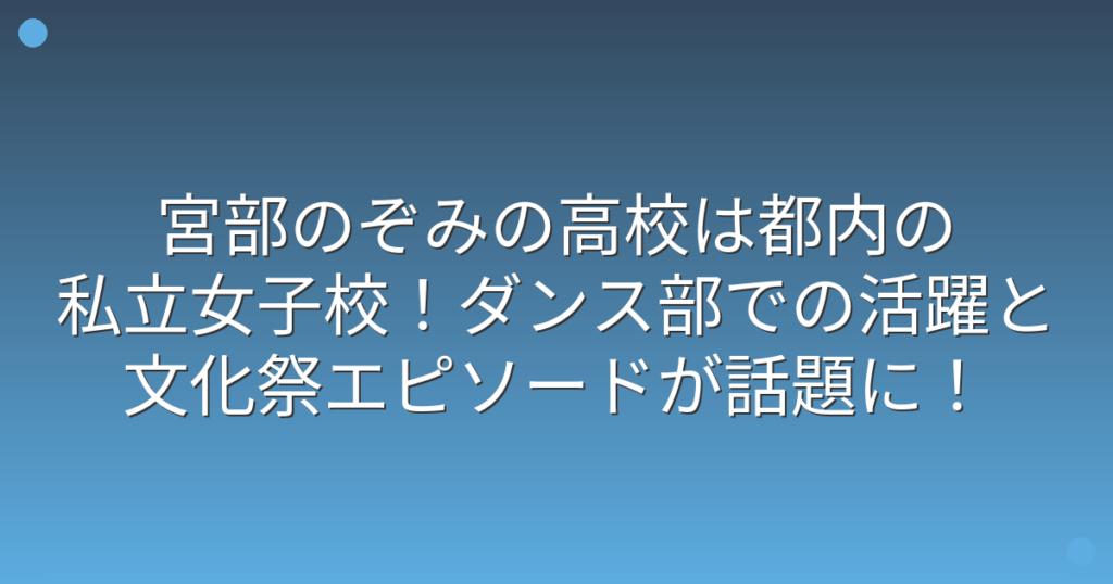 宮部のぞみの高校は都内の私立女子校!ダンス部での活躍と文化祭エピソードが話題に!