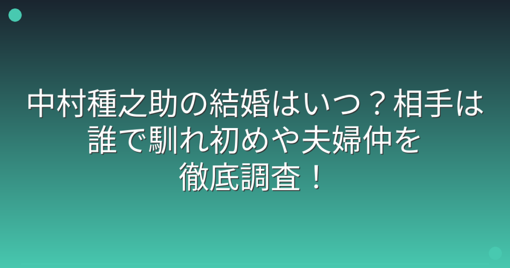 中村種之助の結婚はいつ?相手は誰で馴れ初めや夫婦仲を徹底調査!