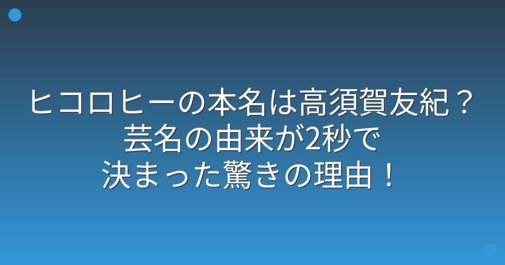ヒコロヒーの本名は高須賀友紀?芸名の由来が2秒で決まった驚きの理由!