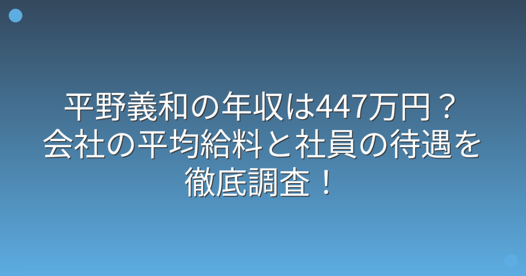 平野義和の年収は447万円?会社の平均給料と社員の待遇を徹底調査!