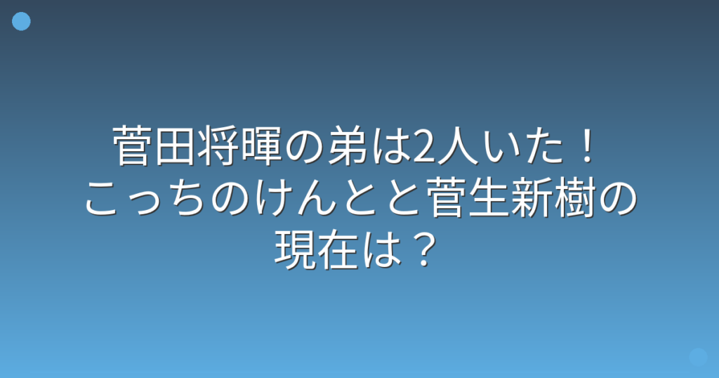 人気俳優の菅田将暉さんに弟がいることが話題になっていますね。 実は菅田将暉さんには2人の弟がおり、それぞれ異なる分野で活躍しているんです。 そこで今回は、菅田将暉さんの弟であるこっちのけんとさんと菅生新樹さんについて、詳しく見ていきましょう... -