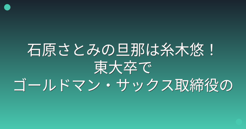石原さとみの旦那は糸木悠!東大卒でゴールドマン・サックス取締役の経歴が凄すぎる?
