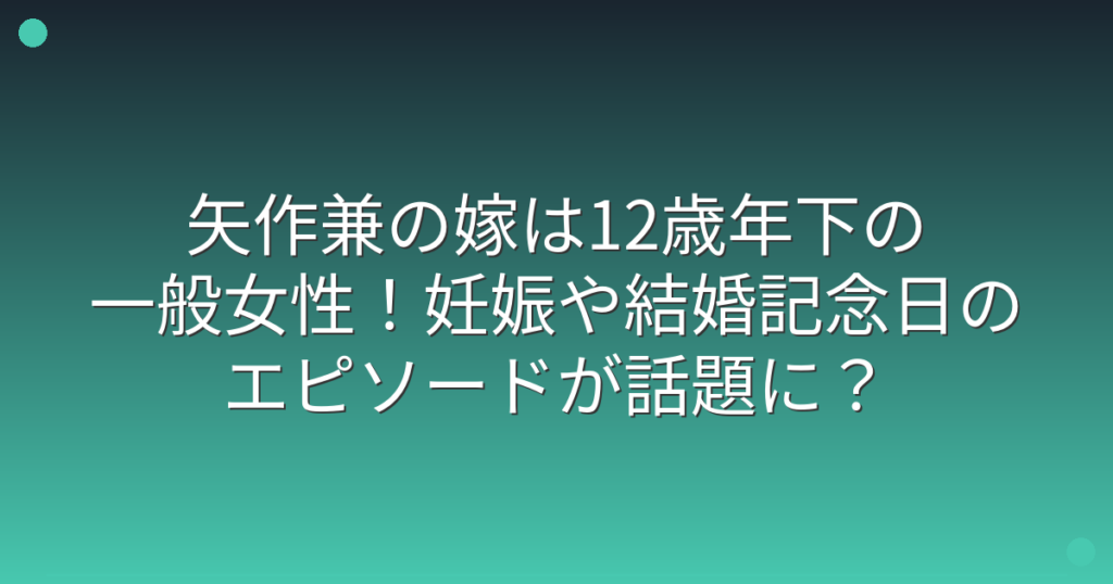 矢作兼の嫁は12歳年下の一般女性!妊娠や結婚記念日のエピソードが話題に?