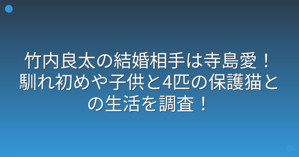 竹内良太の結婚相手は寺島愛!馴れ初めや子供と4匹の保護猫との生活を調査!