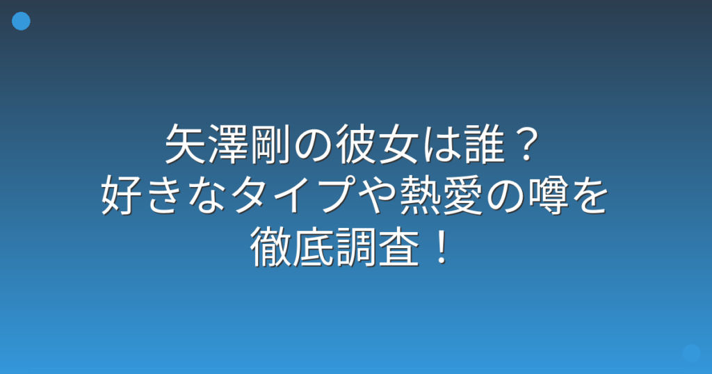 矢澤剛の彼女は誰?好きなタイプや熱愛の噂を徹底調査!