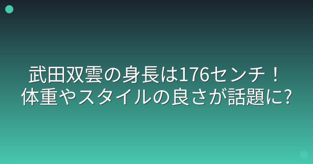 書道家として活躍する武田双雲さんの身長が話題になっていますね。 メディア出演も多い武田双雲さんですが、そのスタイルの良さに注目が集まっています。 そこで今回は、武田双雲さんの身長や体重、スタイルについて詳しく見ていきましょう! 武田双雲の身... -