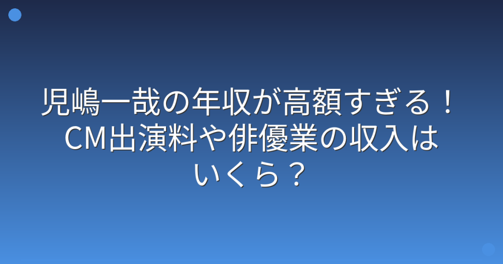 児嶋一哉の年収が高額すぎる!CM出演料や俳優業の収入はいくら?