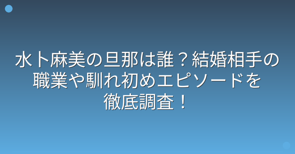 水卜麻美の旦那は誰?結婚相手の職業や馴れ初めエピソードを徹底調査!