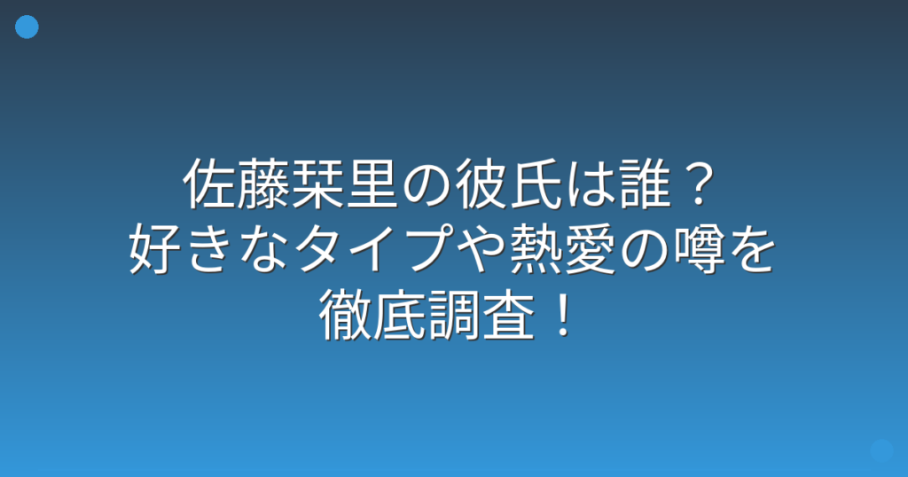 モデルでタレントの佐藤栞里さんの彼氏について、ファンの間で話題になっていますね。 明るいキャラクターと親しみやすい笑顔で人気の佐藤栞里さんですが、プライベートな恋愛事情が気になるという声が多く寄せられています。 そこで今回は、佐藤栞里さん... -