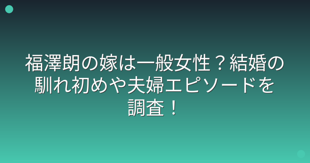 フリーアナウンサーとして長年活躍されている福澤朗さんですが、プライベートについて気になっている方も多いのではないでしょうか。 特に福澤朗さんの嫁や結婚生活について、ファンの間で話題になっていますね。 そこで今回は、福澤朗さんの嫁や結婚の馴... -