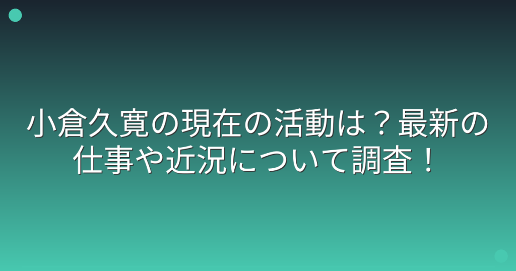 小倉久寛の現在の活動は?最新の仕事や近況について調査!