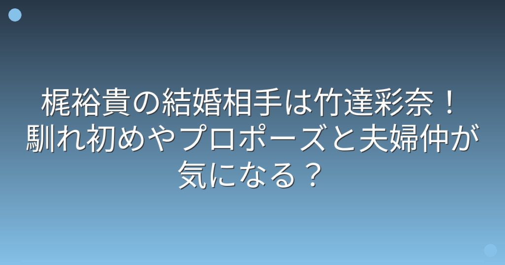 人気声優の梶裕貴さんの結婚が話題になっていますね。 梶裕貴さんは2019年に同じ声優の竹達彩奈さんとの結婚を発表し、ファンの間で大きな注目を集めました。 お二人の馴れ初めやプロポーズのエピソード、そして現在の夫婦仲について気になる方も多いので... -