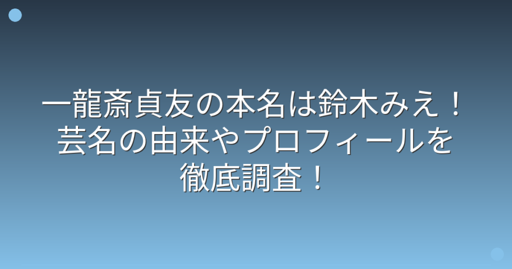 一龍斎貞友の本名は鈴木みえ!芸名の由来やプロフィールを徹底調査!