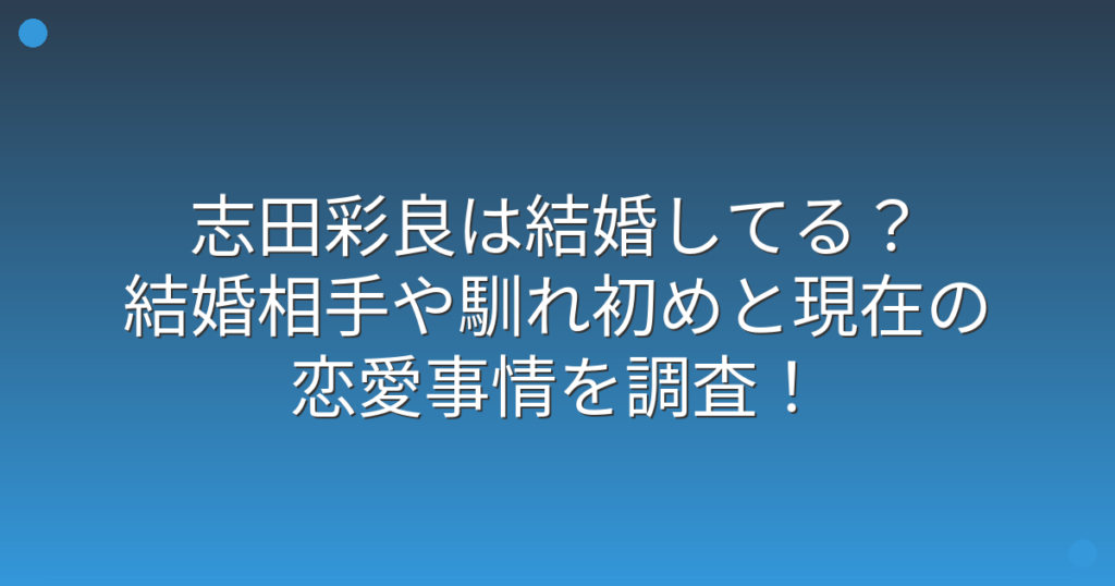 志田彩良は結婚してる?結婚相手や馴れ初めと現在の恋愛事情を調査!