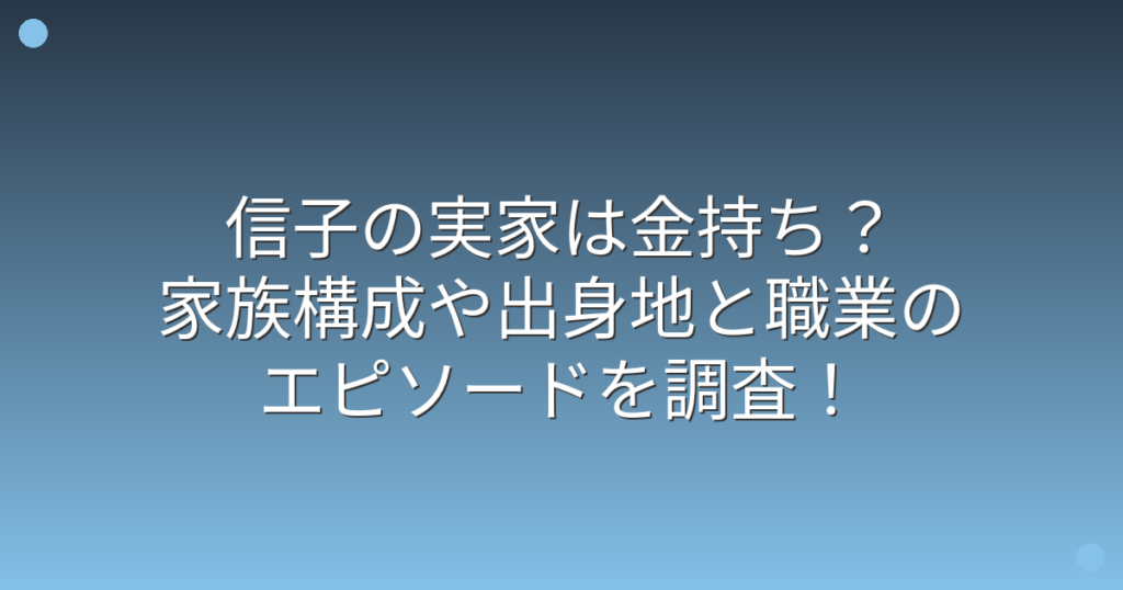 信子の実家は金持ち?家族構成や出身地と職業のエピソードを調査!