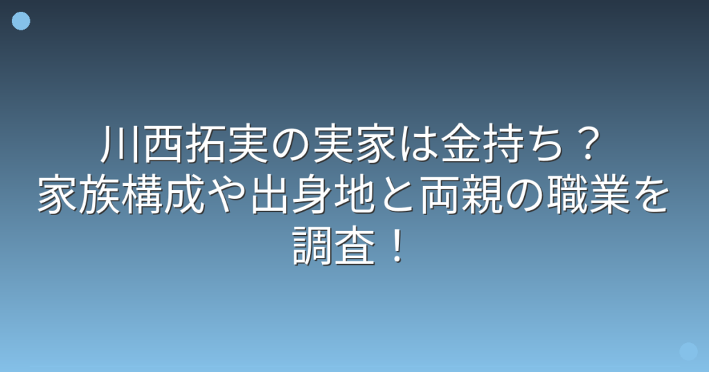 川西拓実の実家は金持ち?家族構成や出身地と両親の職業を調査!