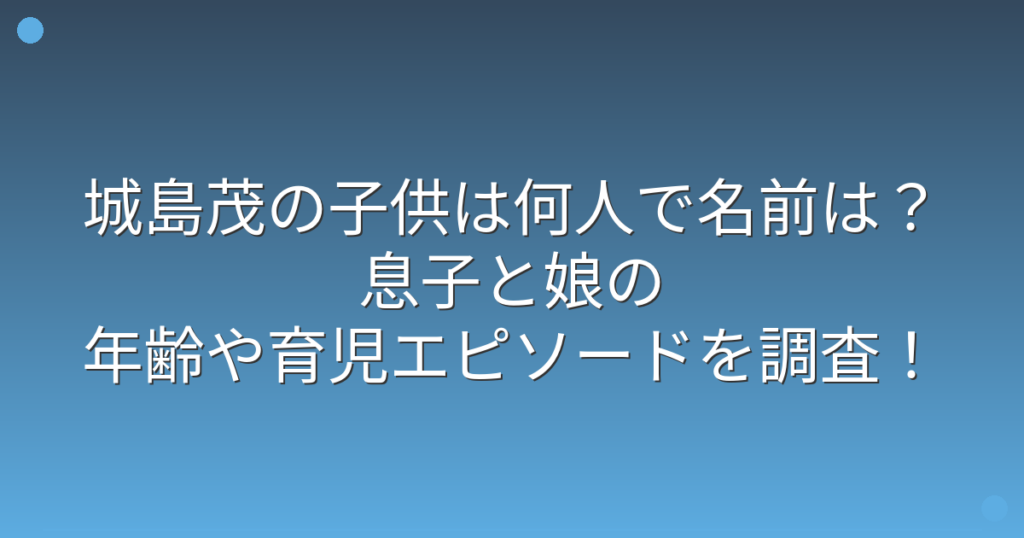 城島茂の子供は何人で名前は?息子と娘の年齢や育児エピソードを調査!