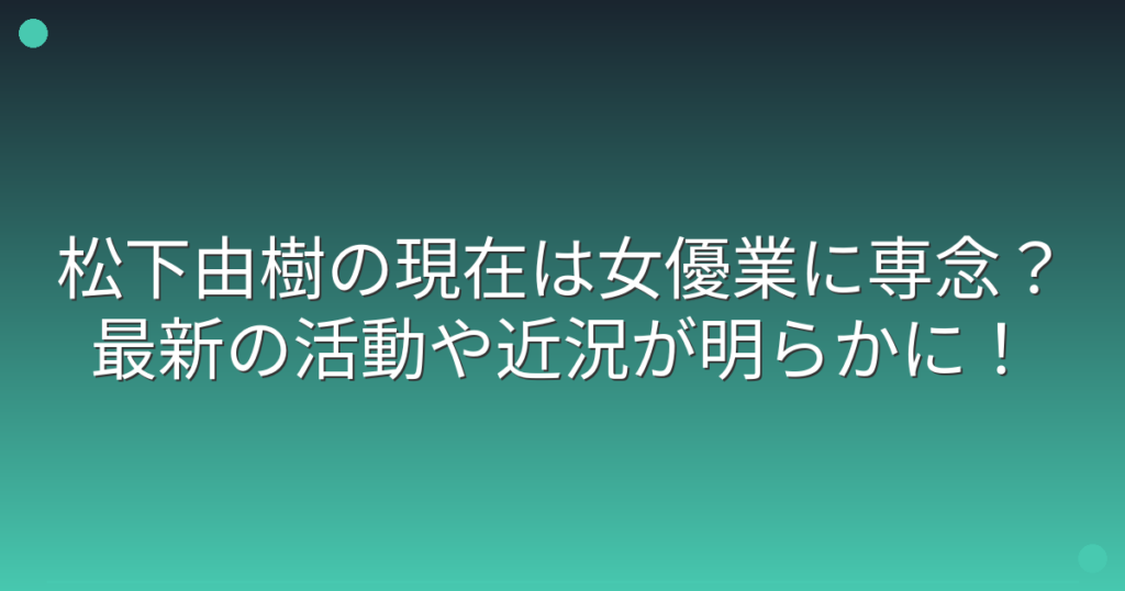松下由樹の現在は女優業に専念?最新の活動や近況が明らかに!