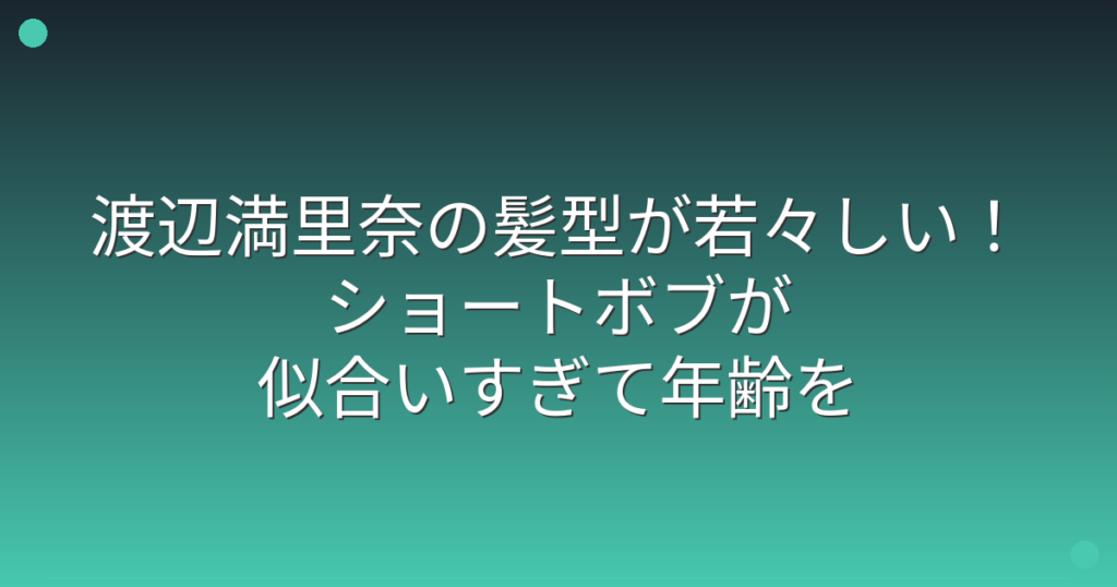 渡辺満里奈の髪型が若々しい!ショートボブが似合いすぎて年齢を感じさせない秘密とは?