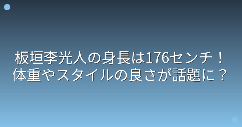 俳優として活躍する板垣李光人さんのスタイルの良さが話題になっていますね。 テレビドラマや映画で見かける度に、その高身長とスマートな体型が注目を集めています。 そこで今回は、板垣李光人さんの身長や体重、スタイルについて詳しく見ていきましょう... -