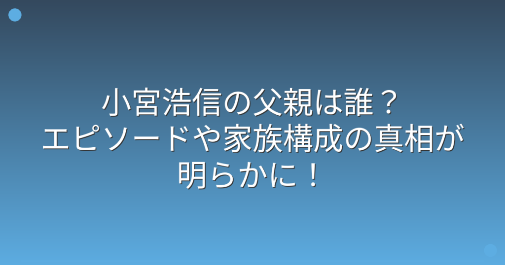 小宮浩信の父親は誰?エピソードや家族構成の真相が明らかに!