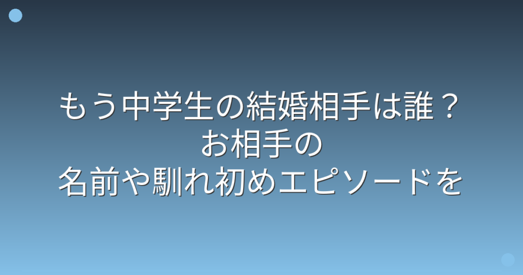 もう中学生の結婚相手は誰?お相手の名前や馴れ初めエピソードを徹底調査!