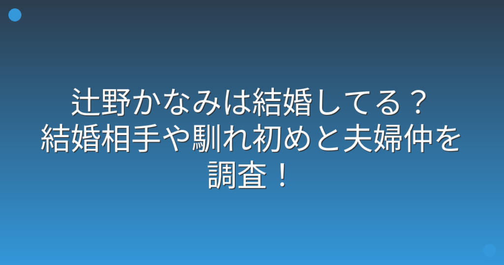 辻野かなみは結婚してる?結婚相手や馴れ初めと夫婦仲を調査!