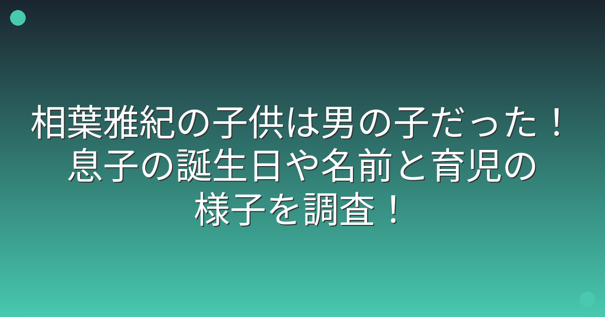 そこで今回は、相葉雅紀さんの子供について、性別や誕生の詳細、そしてメンバーからの祝福の声など、詳しく見ていきましょう!