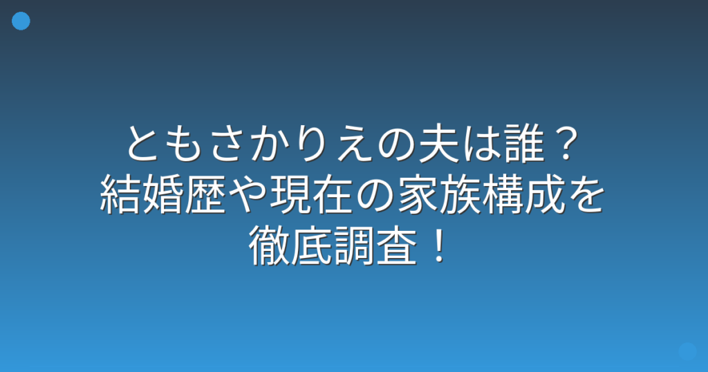 女優として長年活躍しているともさかりえさんですが、プライベートについて気になる方も多いのではないでしょうか。 特に「ともさかりえさんの夫は誰なのか」「現在は結婚しているのか」といった疑問を持つ方が増えています。 2025年10月に46歳の誕生日を...