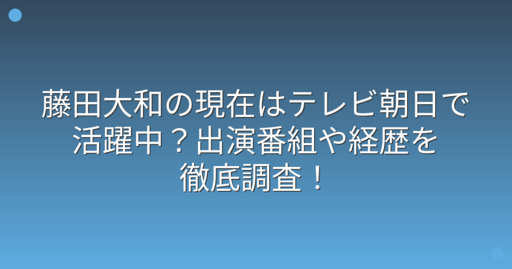 藤田大和の現在はテレビ朝日で活躍中?出演番組や経歴を徹底調査!