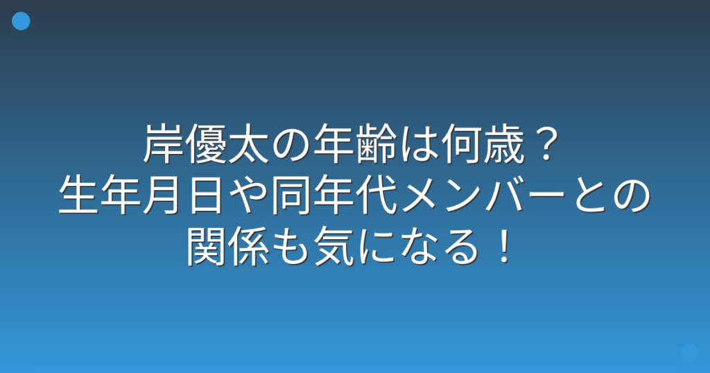 岸優太の年齢は何歳?生年月日や同年代メンバーとの関係も気になる!