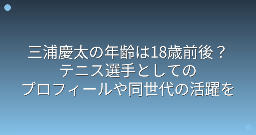 テニス界で注目を集めている三浦慶太さんの年齢について、気になっている方も多いのではないでしょうか。 最近、ジュニアテニス界では若い世代の活躍が目覚ましく、三浦慶太さんもその一人として話題になっています。 そこで今回は、三浦慶太さんの年齢や...
