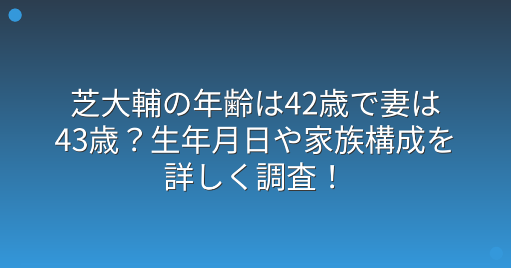 芝大輔の年齢は42歳で妻は43歳?生年月日や家族構成を詳しく調査!