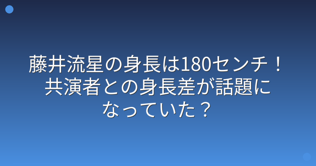 藤井流星の身長は180センチ!共演者との身長差が話題になっていた?