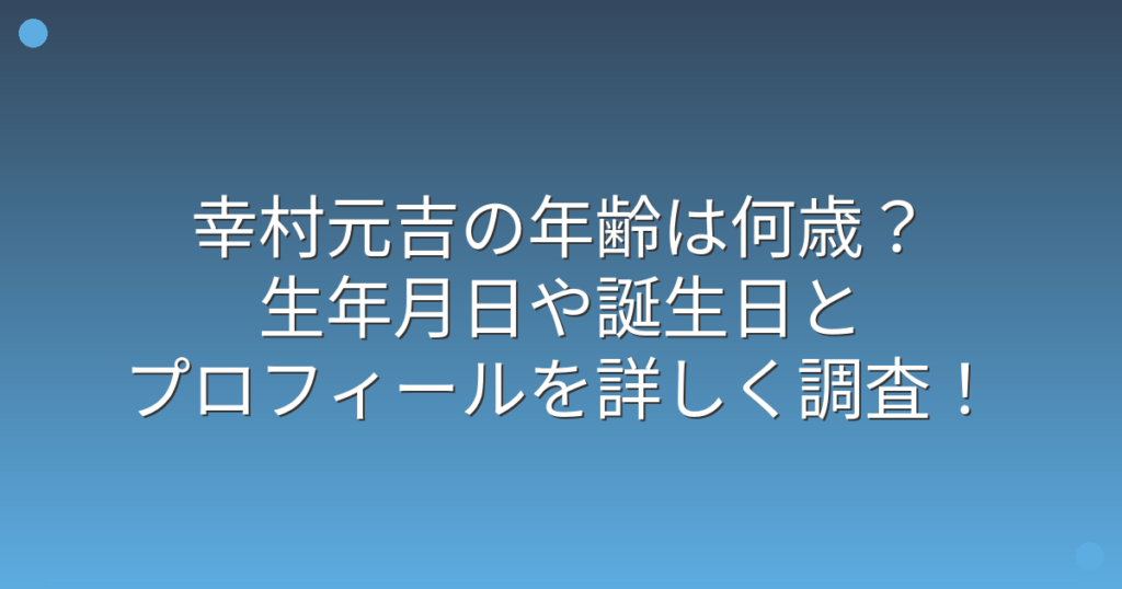 幸村元吉の年齢は何歳?生年月日や誕生日とプロフィールを詳しく調査!