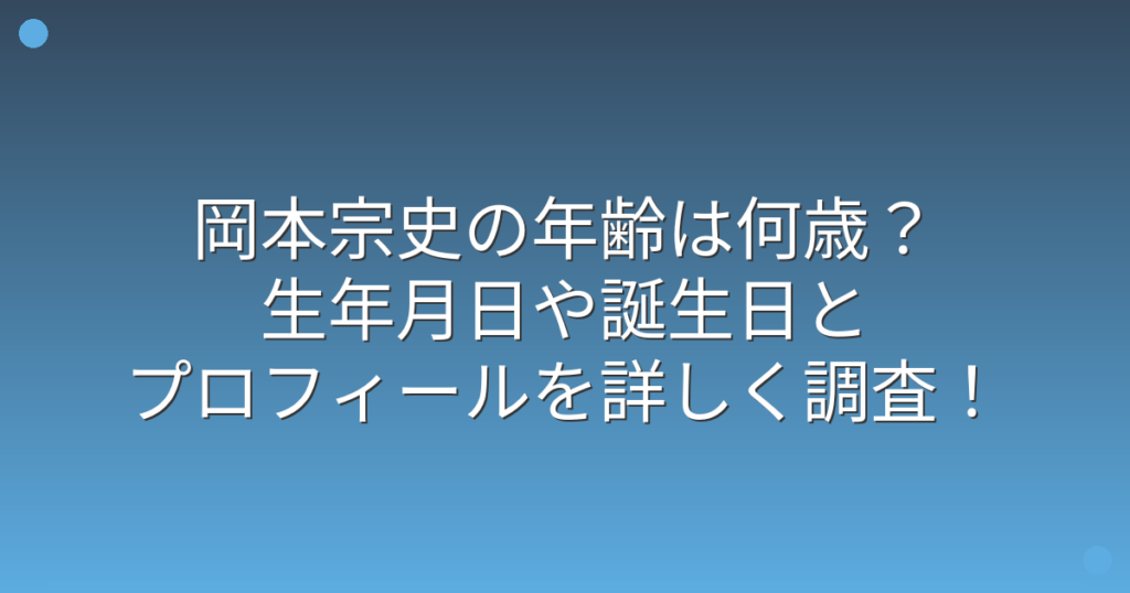 岡本宗史の年齢は何歳?生年月日や誕生日とプロフィールを詳しく調査!