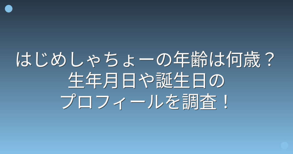 はじめしゃちょーの年齢は何歳?生年月日や誕生日のプロフィールを調査!