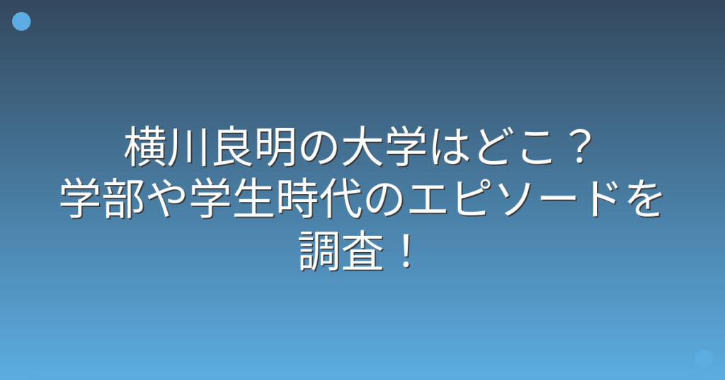 横川良明の大学はどこ?学部や学生時代のエピソードを調査!