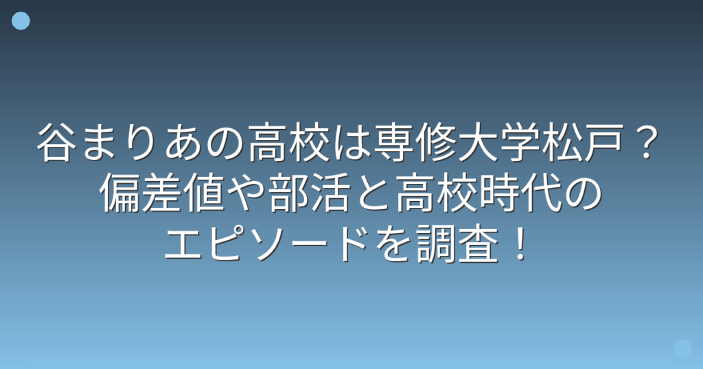 谷まりあの高校は専修大学松戸?偏差値や部活と高校時代のエピソードを調査!