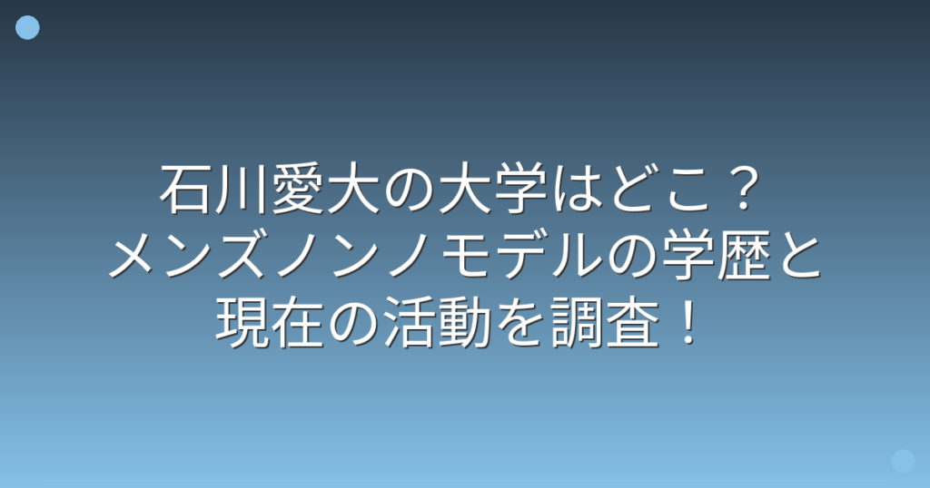 メンズノンノモデルとして活躍中の石川愛大さんが注目を集めていますね。 185cmという高身長と端正なルックスで人気を博している石川愛大さんですが、大学はどこに通っているのか気になっている方も多いのではないでしょうか。 そこで今回は、石川愛大さん... -