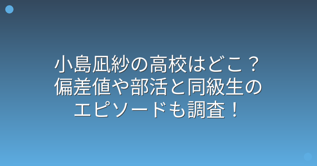 小島凪紗の高校はどこ?偏差値や部活と同級生のエピソードも調査!