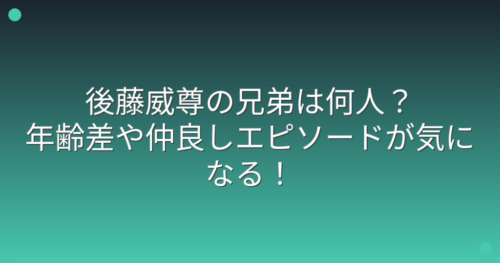 後藤威尊の兄弟は何人?年齢差や仲良しエピソードが気になる!