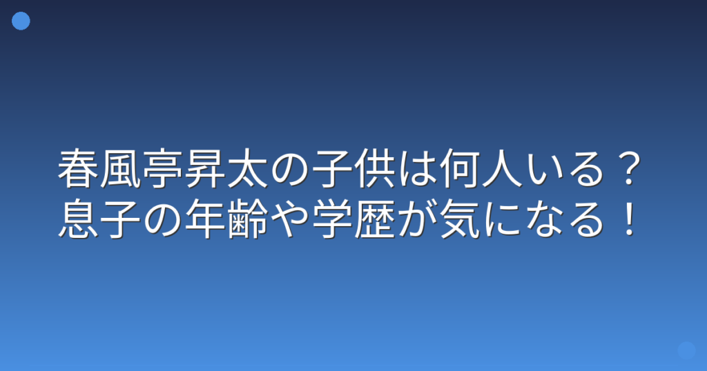 春風亭昇太の子供は何人いる?息子の年齢や学歴が気になる!
