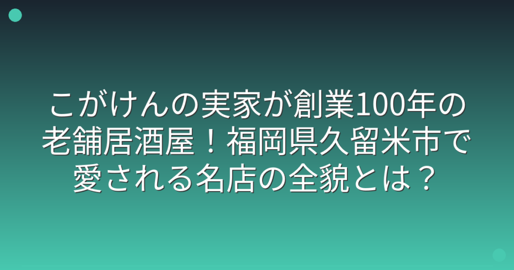 こがけんの実家が創業100年の老舗居酒屋!福岡県久留米市で愛される名店の全貌とは?