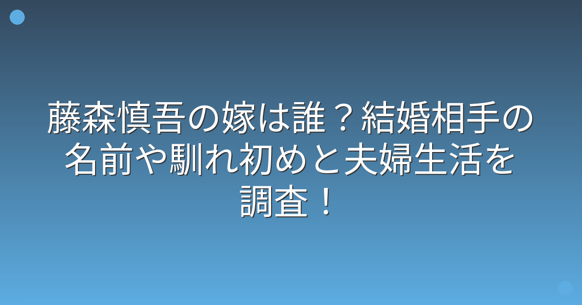 そこで今回は、藤森慎吾さんの嫁は誰なのか、結婚相手の名前や馴れ初め、そして夫婦生活について詳しく見ていきましょう!