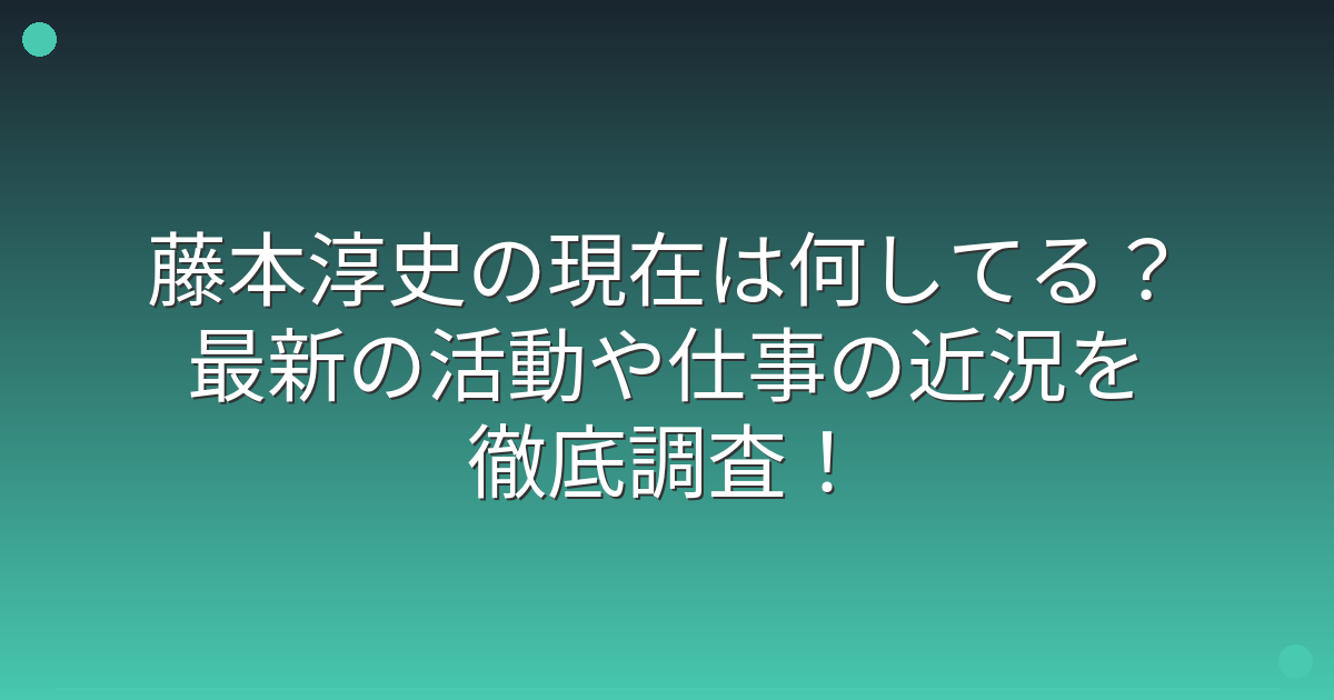 今回は、藤本淳史さんの現在の活動状況や仕事内容、そして最新の近況についてお伝えしてきました。