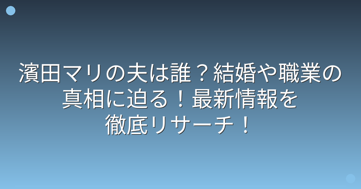 しかし、濱田マリさんの夫に関する具体的な情報は、2025年9月時点で公開されていません。