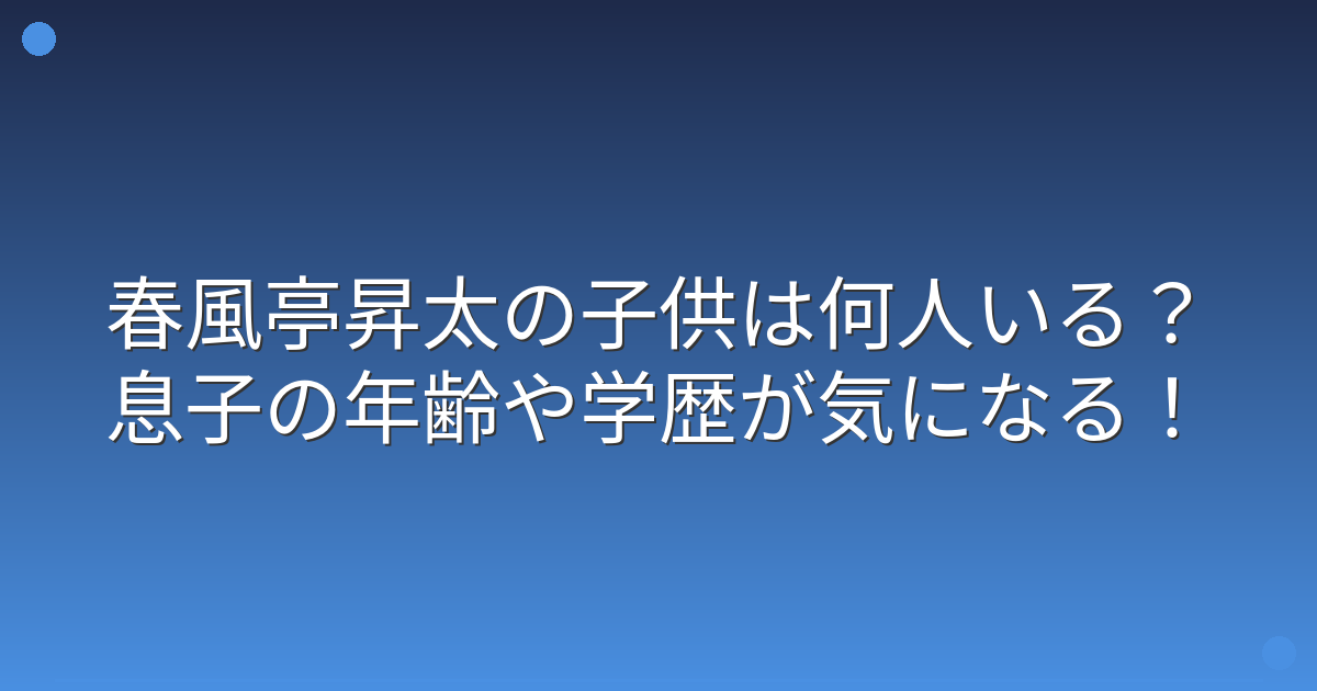 そこで今回は、春風亭昇太さんの子供について、詳しく見ていきましょう!