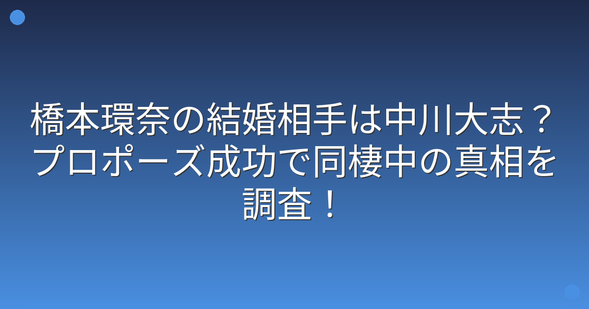 関係者の話では、中川さんは真剣に橋本さんとの将来を考えており、タイミングを見計らってプロポーズに踏み切ったとのことです。