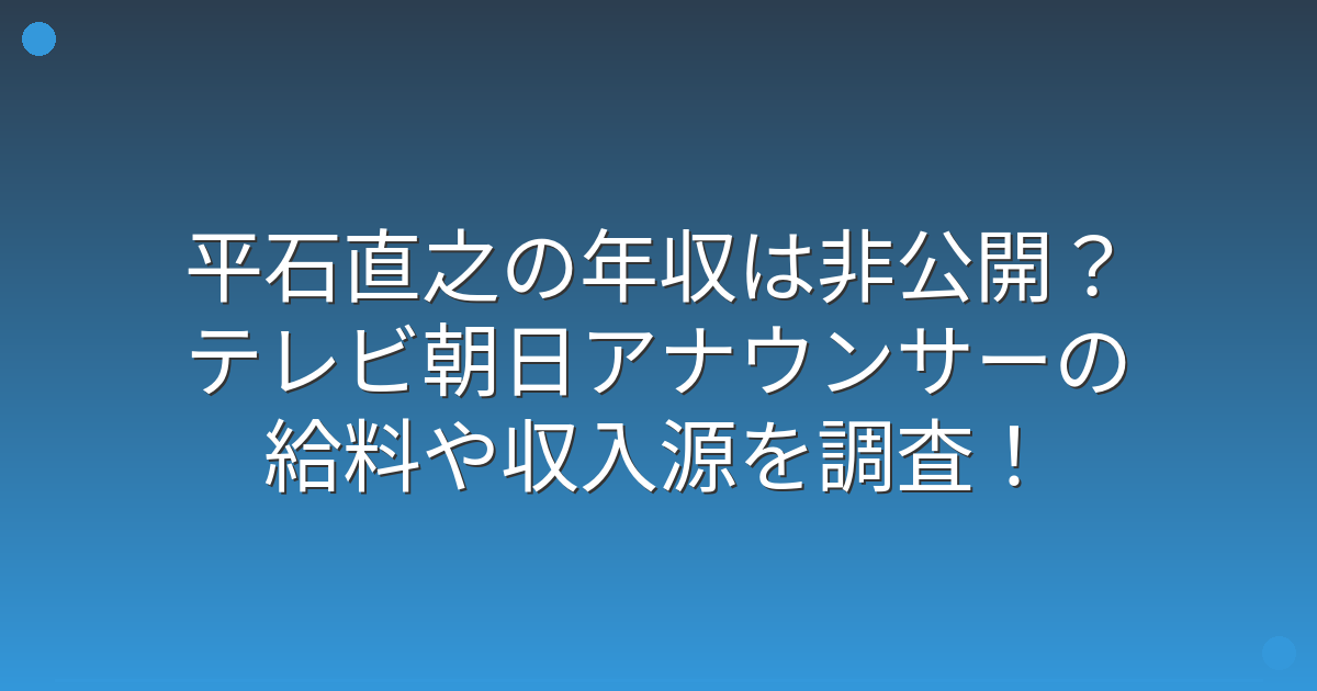 テレビ朝日のアナウンサーとして活躍する平石直之さんの年収が話題になっていますね。